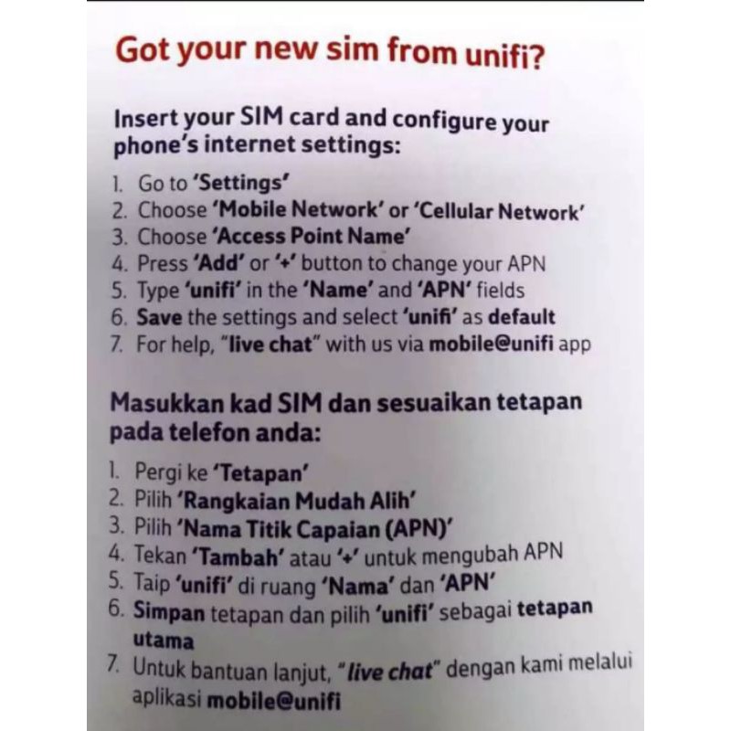 Live Chat Unifi Mobile : 1
